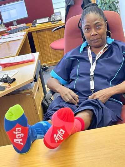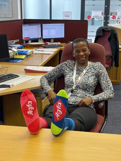 Earlier this year we created some lovely coloured Agfa HealthCare socks and shared them with colleagues around the world. Ever since, we’re receiving pictures of “happy feet”. Our socks are keeping the team comfortable whether working from home, at a customer, or when out and about at the beach or on the mountain !